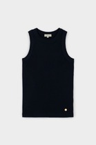 Классическим элементом гардероба является базовый топ в рубчик. Бретели стандартной ширины, круглый вырез и добавление эластана делают изделие комфортным в носке и универсальным в повседневной жизни. Синий цвет позволяет выбирать его в качестве базы под любой образ.