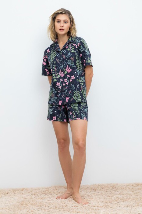 Комплект для комфортного сна из набивного трикотажа с нежным рисунком из 100% натурального хлопка. Рубашка с короткими рукавами на пуговицах. Шорты с мягким поясом на резинке. Гладкий материал приятен к телу, не теряет форму и позволяет коже дышать.