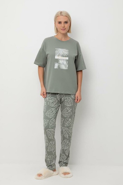Заказать Very Neat пижама жен Е 20142/зеленый чай,тропические листья