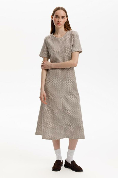 Классический силуэт летнего платья, изготовленного из премиального трикотажа DOUBLE FACE. Мягкий на ощупь трикотаж выполнен из высококачественной гребенной пряжи, а его графичный дизайн добавляет летнего настроения.