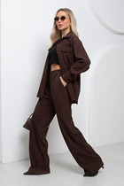 Уютная трикотажная рубашка с отложным воротником и накладными карманами с клапанами из петельчатого футера трёхнитки. В составе 80% натурального хлопка и 20% полиэстера, при этом полиэстер ввязан внутрь по особой технологии и не соприкасается с кожей. Свободная посадка и спущенные плечи придают рубашке модный объём. Застёгивается спереди на пуговицы.