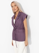Однобортный, прямой немного удлиненный жакет с застежкой на пуговицы и двумя накладными карманами из плотного гладкого трикотажа интерлок.