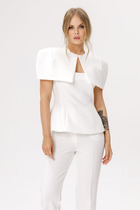 Блузка выполнена из полупрозрачного лиоцелла с эффектом шелка. Праздничная и переливающаяся фактура ткани изыскано играет в вечернем освещении. Легкая и почти невесомая модель, приятно ощущается на теле. Застежка на пуговицы из натурального перламутра, подчеркивает роскошь.