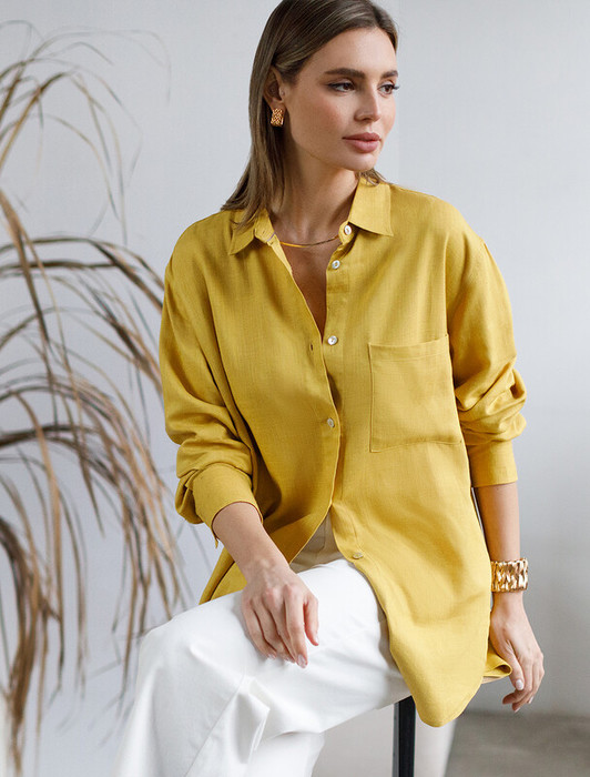 Совместные покупки Сургут Женская одежда Блузки, рубашки — Vilatte Блузка изо льна с вискозой D29.244 горчичный
