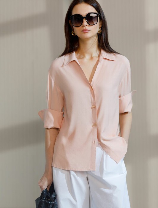 27.03 Vilatte Блузка с широкими манжетами из вискозы с лиоцеллом D29.346 пудров