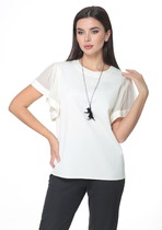 Совместные покупки Сургут Женская одежда Блузки, рубашки — 27.03 Vilatte Блузка с широкими манжетами из вискозы с лиоцеллом D29.346 пудров