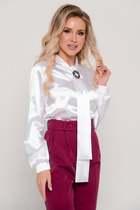 Блузка смотрится нарядно благодаря сочетанию мягкой текстуры сатина и его мягкого не вычурного блеска. Такая повседневная блузка легко впишется в деловой гардероб или станет отличны
