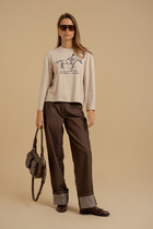Брюки свободного кроя «трубы» выполнены из мягкого хлопкового микро-вельвета с добавлением эластана. Изделие комфортно садится по фигуре и не сковывает движения. Модель с пятью карманами, как у джинсов дополнена высококачественной фурнитурой с фирменным логотипом бренда. Идеально впишутся в повседневный образ, со свитером крупной вязки, курткой-косухой, ботинками на грубой подошве, челси и казаками.