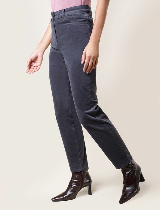 Брюки выполнены из мягкого хлопкового микро-вельвета с добавлением эластана. Изделие комфортно садится по фигуре и не сковывает движения. Модель с пятью карманами, как у джинсов-скинни дополнена высококачественной фурнитурой с фирменным логотипом бренда. Хорошо комбинируется с вязаным трикотажем, блузками и денимом. Как альтернатива брюкам, в нестрогий офисный дресс-код.
