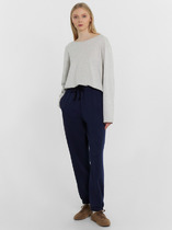 Брюки выполнены из тонкого хлопкового футера. Эластичный материал хорошо пропускает воздух, позволяя телу дышать, и легко тянется, не ограничивая движения. Пояс на резинке дополнен внутренним шнуром, для комфортной регулировки изделия. Брюки сочетаются в костюме с футболкой D49.003 и худи D49.006
