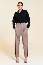 Брюки свободного кроя выполнены из костюмной ткани в полоску. Модель с карманами и поясом на резинке дополнена регулируемым шнурком из основной ткани. Изделие не сковывает движений и подходит для любого типа фигуры. Сочетается в костюме с жилетом D27.001