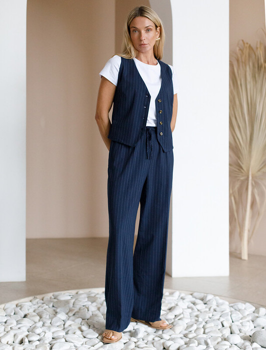 Vilatte Брюки свободного кроя из костюмной ткани D24.252 темно-синий