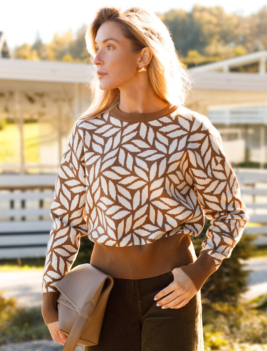 Совместные покупки Сургут Женская одежда Джемперы, свитеры, водолазки — 22.03 Vilatte Джемпер двуслойной жаккардовой вязки с кашемиром D39.309 карамель