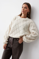 Совместные покупки Сургут Женская одежда Джемперы, свитеры, водолазки — Vilatte Джемпер фактурной вязки из хлопка с кашемиром D39.349 коричневый
