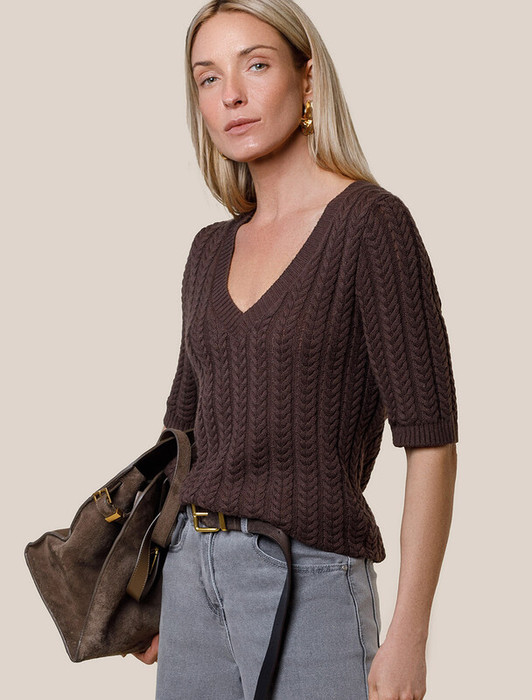 Vilatte Джемпер фактурной вязки из хлопка с кашемиром D39.349 коричневый