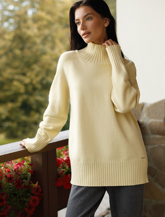 Совместные покупки Сургут Женская одежда Джемперы, свитеры, водолазки — Vilatte Джемпер из пряжи с кашемиром D34.204 светло-желтый