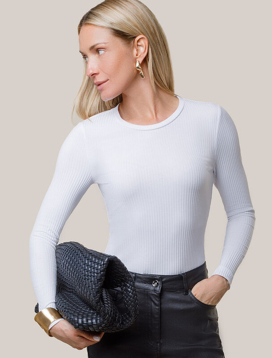 27.03 Vilatte Джемпер из трикотажа в широкий рубчик D49.106 белый