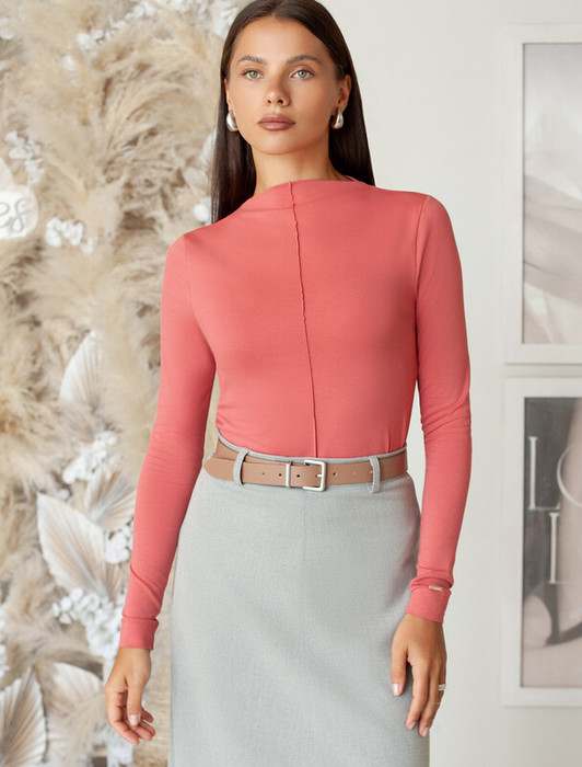 Джемпер прямого силуэта с цельнокроеным воротом выполнен из премиального хлопка. Наличие эластана в составе гарантирует комфорт и формоустойчивостиь изделия. Вертикальный декоративный шов спереди, визуально вытягивает силуэт. Базовая модель хорошо впишется в любой гардероб и подойдет для офисного дресс-кода. К изделию пришит металлический логотип бренда.