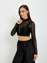 Джемпер с вырезом лодочкой и прозрачными рукавами создает женственный и элегантный образ. Тело джемпера черного цвета выполнено из плотного вискозного трикотажа, обеспечивающего комфорт, в то время как рукава из тонкой сетки создают стильный контраст. Глубокий вырез лодочка подчеркивает линию плеч и создает элегантный силуэт. Идеальный выбор для стильных образов!