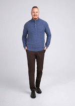 Черный джемпер с воротом, застегивающимся на черепаховые пуговицы, связали из мягкого хлопка с добавлением акрила; состав, который отлично согревает, не колется и при этом не перегревает тело, поэтому вещь получилась максимально комфортной для переменчивой погоды. Повседневный образ поддержат светлые брюки, синие джинсы и броги.