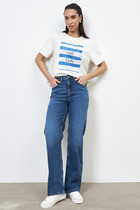 Широкие джинсы сочетаются с узкими ботильонами для трендового создания контраста объемов, а так же с обувью на плоском ходу. Эластичные свойства ткани обеспечивают удобные посадку и свободу движений — стрейч-материал делает повседневные джинсы особенно практичными для ежедневного гардероба. Прекрасно подойдет тем, кто ценит комфортные вещи без ущерба стилю. Эти багги легко комбинируются с укороченным верхом, облегающими водолазками или свободными рубашками в