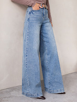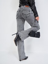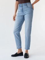 Джинсы выполнены из эластичного денима. Модель свободного кроя с карманами как у классических брюк дополнена эластичной резинкой на поясе сзади. Этот удобный элемент позволяет комфортно фиксировать изделие. При желании можно вставить ремень, в изделии предусмотрены петли по периметру пояса.