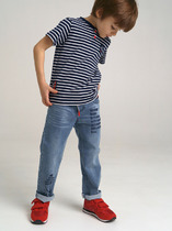 Синие джинсы выполнены из эластичного денима. Внутренняя сторона джинс из мягкого флиса, обеспечит тепло и комфорт на целый день. Есть дополнительная фиксация талии при помощи внутренней резинки. Изделие дополнено высококачественной металлической фурнитурой с логотипом бренда.