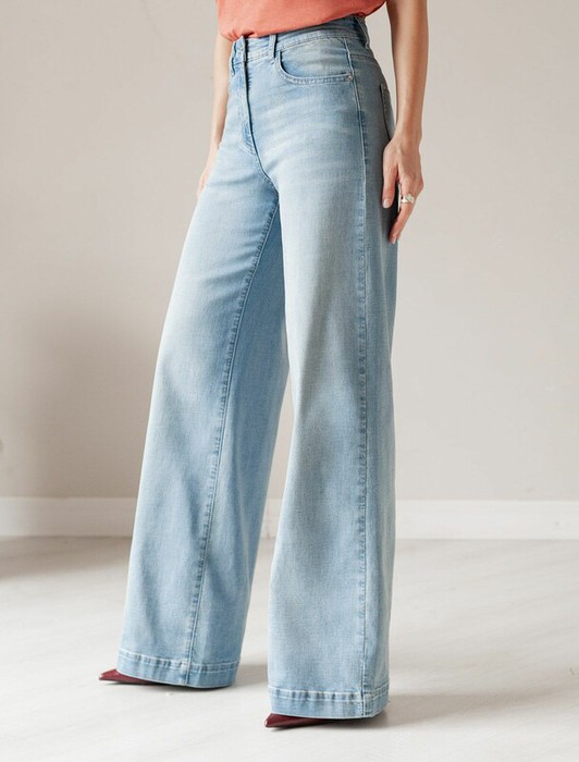 Стильные джинсы трубы синего цвета прямого кроя выполнены из эластичного денима, что делает их особенно удобными для повседневной носки. Декоративная стирка подчеркивает современный дизайн. Джинсы правильного кроя визуально вытягивают силуэт, благодаря эластану в составе аккуратно садятся на любую фигуру, подчеркивая достоинства и обеспечивают максимальный комфорт в течение дня, не сковывая движения. Широкая размерная линейка подходит для разных типов фигур: свободные джинсы комфортны как для обладательниц пышных форм, так и для худеньких. Вы сможете подабрать джинсы на низкий или высокий рост. Плотные джинсы идеально держат форму даже при активном движении и не вытягиваются после долгой носки. Качественная фурнитура, практичные карманы и контрастная строчка делают эти джинсы премиальными. Широкий подгиб добавляет актуальности — такой тренд отлично сочетается как с обувью на каблуке, так и на плоском ходу. Благодаря универсальному дизайну джинсы легко комбинируется с разными элементами гардероба.