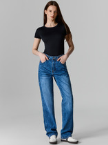 Джинсы трубы светло-голубого цвета выполнены из эластичного денима плотностью 13,7 OZ - классическая структура, которая отлично держит форму.и подчеркивает фигуру. После пошива изделие подвергли специальному виду вошинга — salt-stone washing (солт-стоун вошинг), что дословно значит стирка с каменной солью. Такой вид вошинга позволяет получить стильные потертости на голубых оттенках денима. Джинсы прямого кроя визуально вытягивают силуэт, благодаря эластану в составе аккуратно садятся на любую фигуру и обеспечивают максимальный комфорт в течение дня, не сковывая движения. Широкая размерная линейка подходит для разных типов фигур: свободные джинсы комфортны как для обладательниц пышных форм, так и для худеньких. Плотные джинсы идеально держат форму даже при активном движении и не вытягиваются после долгой носки. Качественная фурнитура и нашивка из эко-кожи с логотипом бренда делают эти джинсы премиальными. Широкий крой добавляет актуальности — такие джинсы отлично сочетаются как с обувью на каблуке, так и на пл