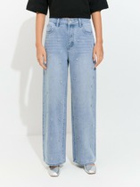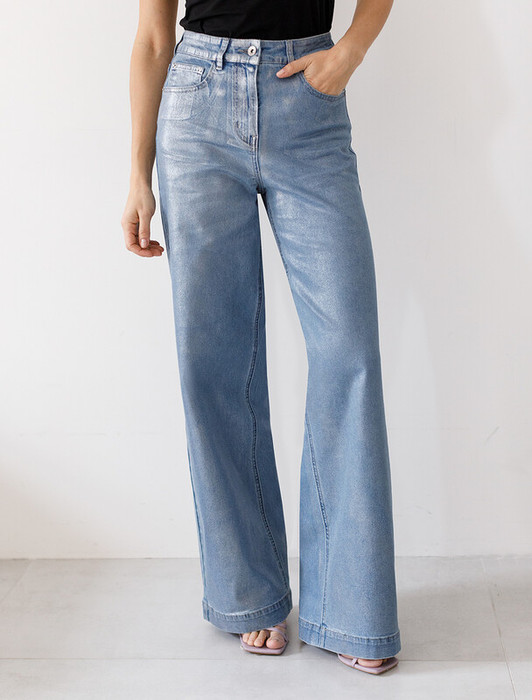 Совместные покупки Сургут Женская одежда Джинсы — Vilatte Джинсы-трубы с металлизированным покрытием D54.219 голубой-серебряный