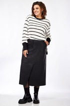 Юбка карандаш выполнена из эластичной поливискозы. Жаккардовое переплетение с геометрическим узором и прямой силуэт визуально стройнят и делают фигуру гармоничной. Мягкое и приятное изделие совершенно не колется и приятное к телу. Сочетайте в костюме с джемпером-поло D39.634 или жакетом D31.388. А также как самостоятельный элемент в комплекте с белой блузкой или светлым жакетом.