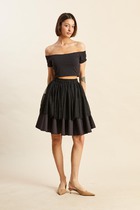 — 27.03 Vilatte Эластичная юбка из поливискозы жаккардовой вязки D36.015 синий-бе