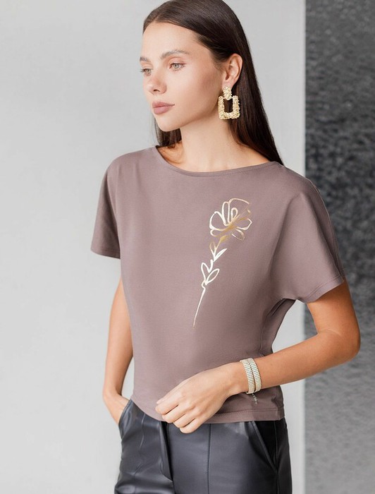 Совместные покупки Сургут Женская одежда Футболки — 27.03 Vilatte Футболка D49.133 кофейный_цветок