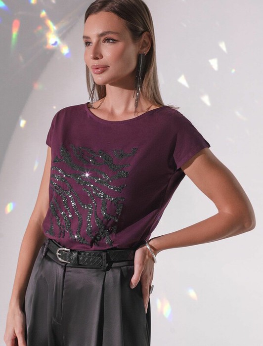 Совместные покупки Сургут Женская одежда Футболки — Vilatte Футболка D49.134 бургунди_зебра