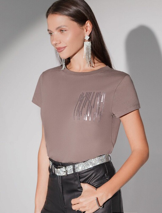Vilatte Футболка D49.135 кофейный_блестки
