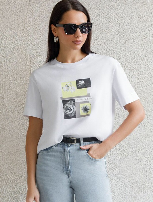 Совместные покупки Сургут Женская одежда Футболки — Vilatte Футболка D49.145 белый_flower_power