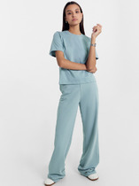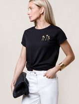Футболка выполнена из премиального хлопка с эластаном. Лаконичный принт выполнен россыпью сияющих страз в тон изделия. Модель среднего объема дополнена подворотами на рукавах. Подходит для любого типа фигуры. Изделие дополнено металлическим логотипом бренда.