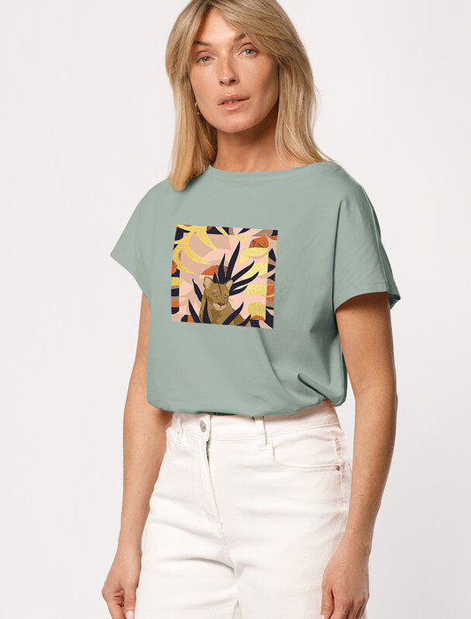Футболка с цельнокроеным рукавом выполнена из премиального хлопка с эластаном. Авторский принт нанесен водными красками с элементами золотистой фольги с устойчивым покрытием. Изделие отлично держит форму, почти не мнется и комфортно сидит по фигуре. Отдельным украшением служит металлический логотип бренда.