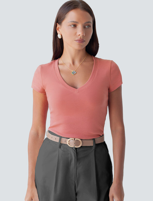 Облегающая футболка с V-образным вырезом цвета фуксия создаст утонченный образ. Идеальная базовая модель для вашего гардероба! Глубокий V-образный вырез подчеркивает линию шеи и зрительно удлиняет силуэт. Футболка выполнена из хлопка с добавлением эластана, которая мягко облегает контуры тела, подчеркивая достоинства фигуры. Универсальный вариант для создания стильных повседневных образов.