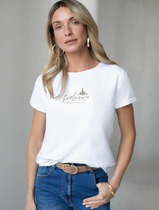 Футболка выполнена из премиального хлопка.Принт "леопард" нанесен фактурными красками с устойчивым покрытием. Наличие эластана в составе гарантирует комфорт и формоустойчивость. Изделие дополнено фирменным металлическим логотипом бренда.