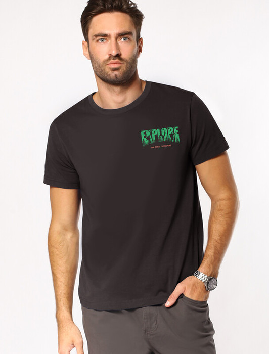 Совместные покупки Сургут Мужская одежда Футболки — Vilatte Футболка из премиального хлопка с авторским принтом U49.026 черный_explo
