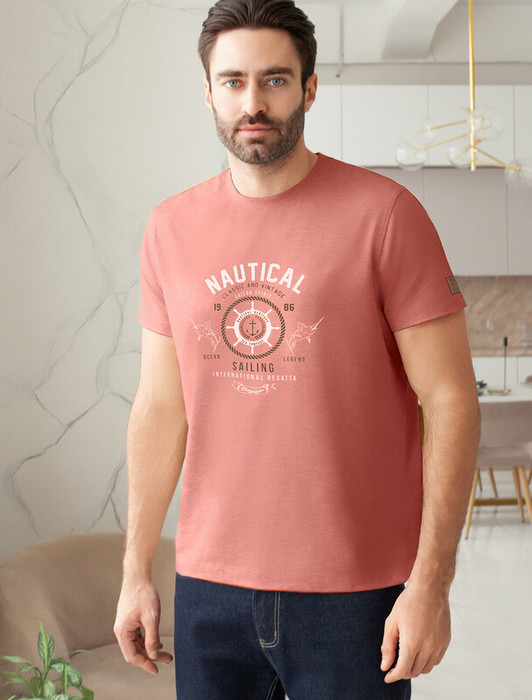 Совместные покупки Сургут Мужская одежда Футболки — Vilatte Футболка из премиального хлопка с авторским принтом U49.045 коралловый_r
