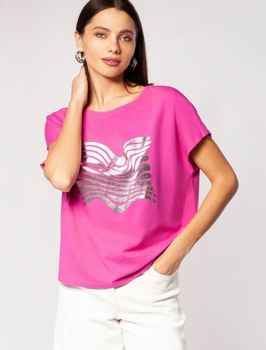 Совместные покупки Сургут Женская одежда Футболки — Vilatte Футболка из премиального хлопка с эластаном D49.894 фуксия_wind