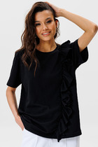 Совместные покупки Сургут Женская одежда Футболки — 27.03 Vilatte Футболка из премиального хлопка с эластаном D49.989 белый-т.синий