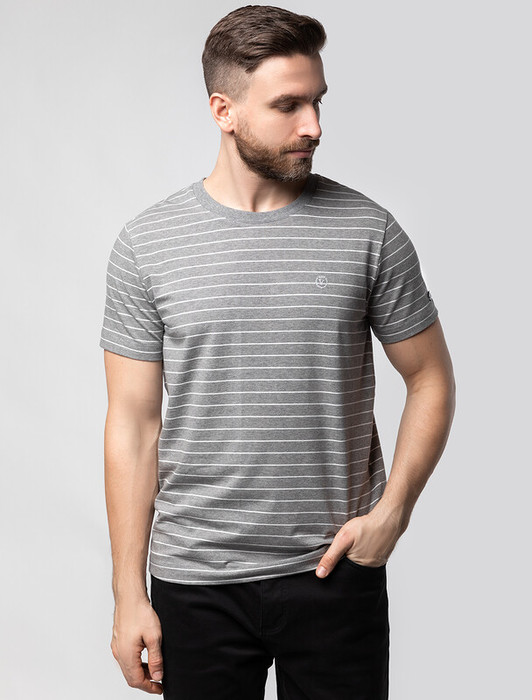 Vilatte Футболка из премиального хлопка с эластаном U49.024 белый-серый