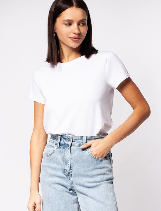 Футболка выполнена из премиального хлопка. Наличие эластана в составе способствует комфорту и формоустойчивости, помогая сохранить изделие в течении долгого времени в идеальном состоянии.  Безупречная база в любом сезоне.