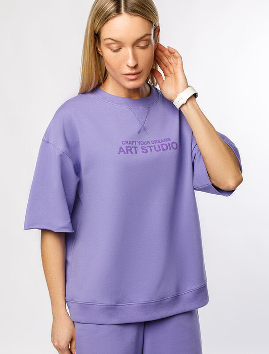 Совместные покупки Сургут Женская одежда Футболки — Vilatte Футболка из тонкого премиального футера с эластаном D49.081 лавандовый_a