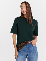 Футболка выполнена из фактурного трикотажа в широкий рубчик. Модель идеально сидит по фигуре не сковывая движения. Хлопковый трикотаж поддерживает оптимальную температуру тела, поэтому в изделии будет комфортно в течении всего дня. Наличие эластана в составе гарантирует формоустойчивости. Базовая модель впишется в любой гардероб.