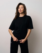 Футболка выполнена из трикотажа в широкий рубчик. Модель с квадратным вырезом дополнена декоративными пуговицами.  Эластичный хлопковый трикотаж сидит по фигуре, не сковывает движений и очень комфортный в носке. Фактура вертикальных полос визуально стройнит и вытягивает силуэт. Базовое изделие хорошо впишется в любой гардероб. Идеально подходит для многослойных образов.