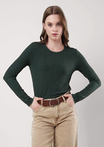 Футболка выполнена из трикотажа в широкий рубчик. Модель с круглым вырезом.  Эластичный хлопковый трикотаж сидит по фигуре, не сковывает движений и очень комфортный в носке. Фактура вертикальных полос визуально стройнит и вытягивает силуэт. Базовое изделие хорошо впишется в любой гардероб. Идеально подходит для многослойных образов.